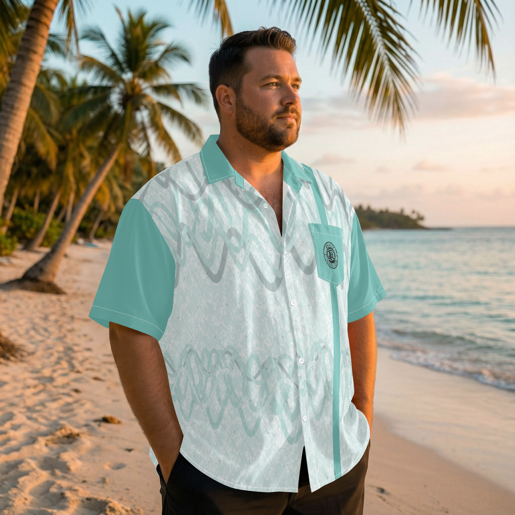 The QREATRZ™ Beach Breeze Hawaiian Shirt is your go-to for effortless summer style. Designed with a refreshing coastal teal color palette and subtle wave-inspired patterns, this shirt brings a clean tropical energy without being overdone.