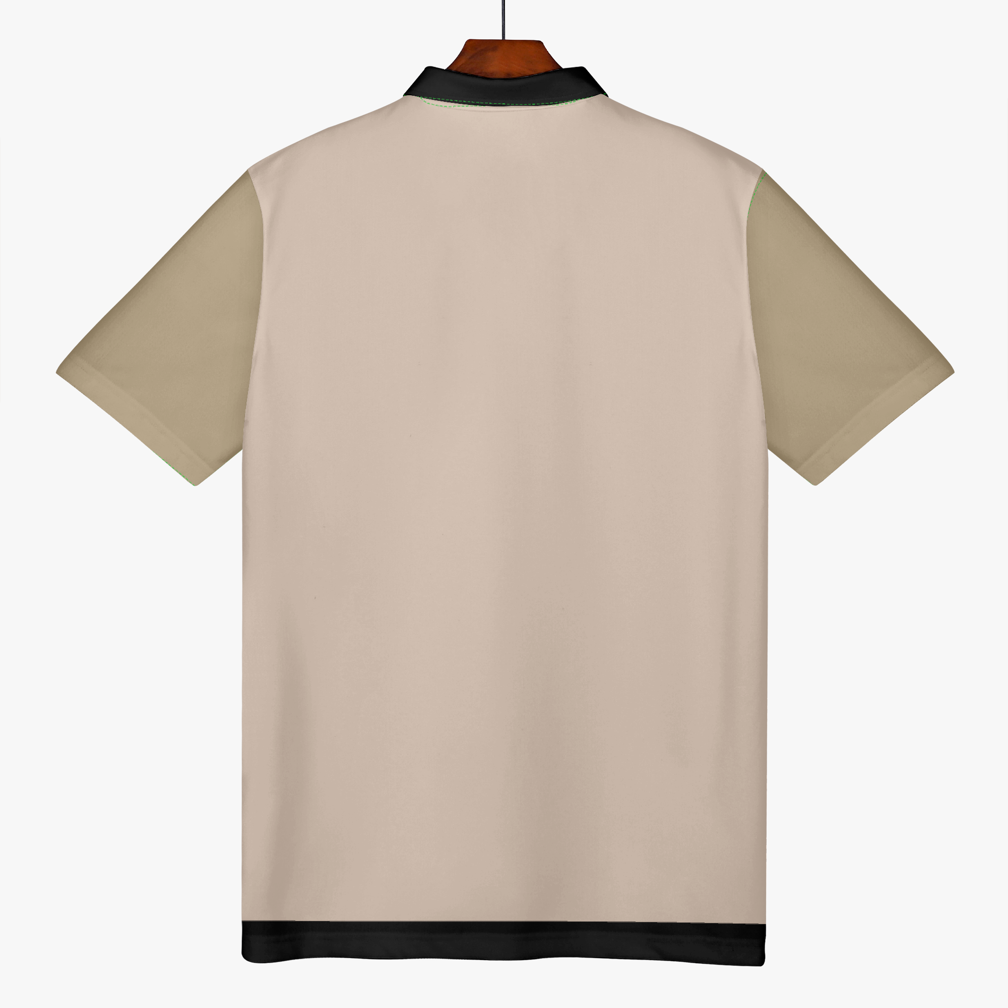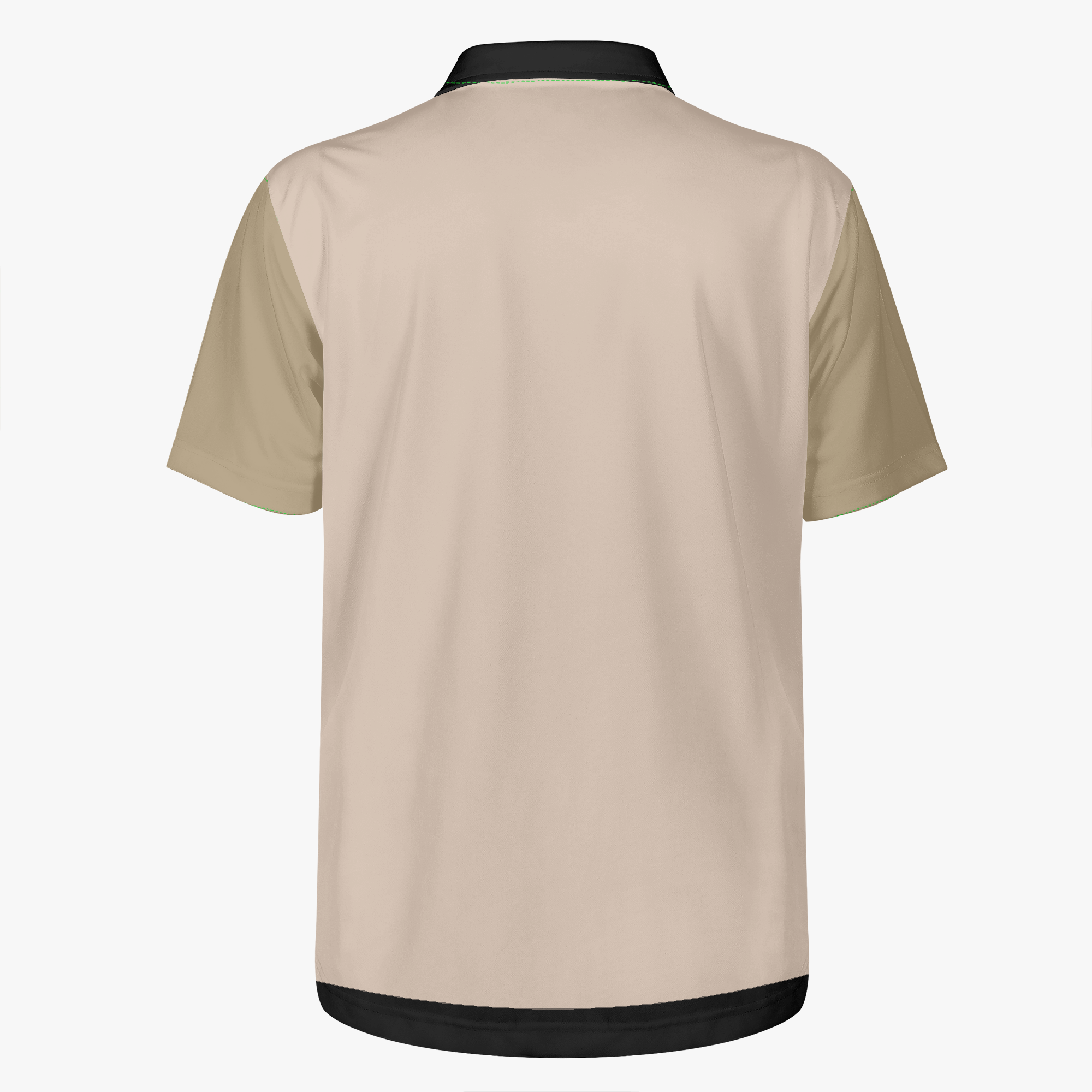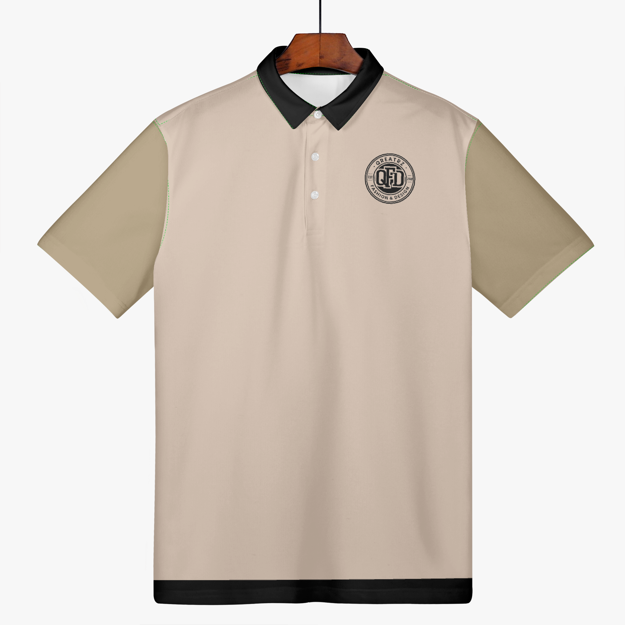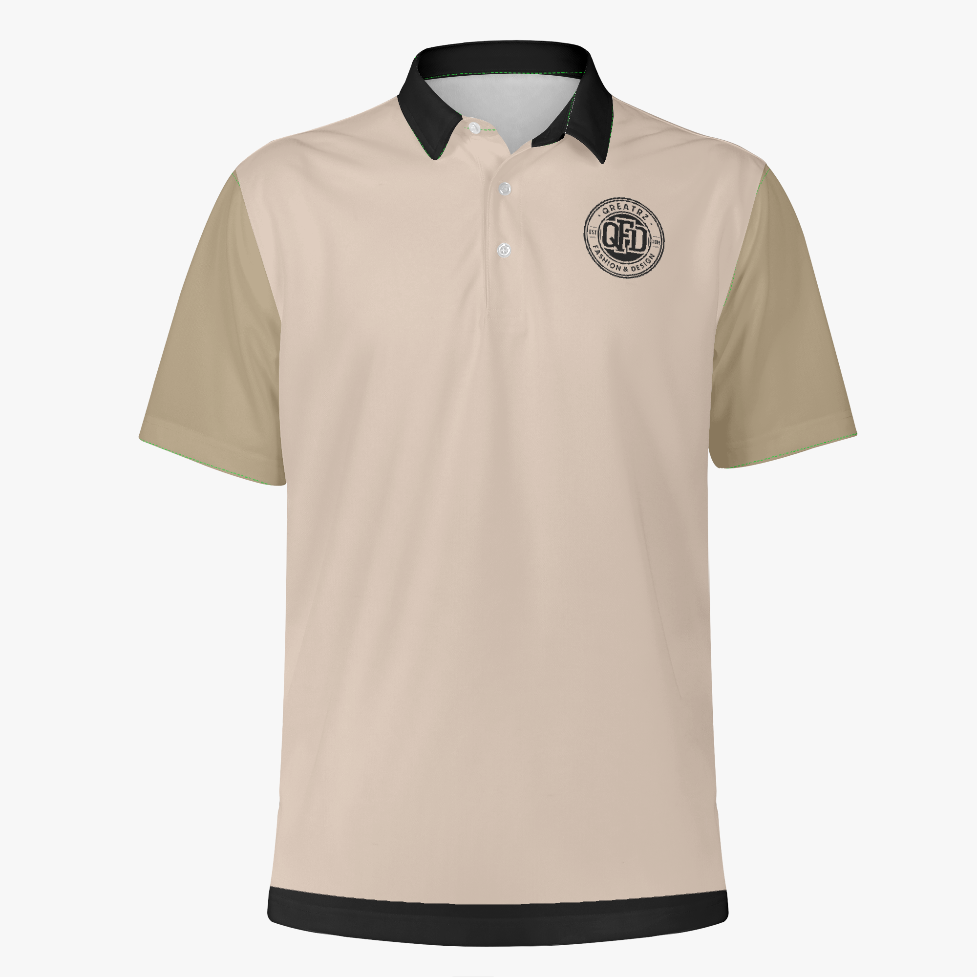 The QREATRZ Beige Polo Shirt brings classic casual style into a clean modern look. This short sleeve collared shirt features a soft beige body with tan sleeves and black trim. The contrast collar adds a sharp finish. The QREATRZ chest logo gives the shirt a branded touch without overpowering the design.