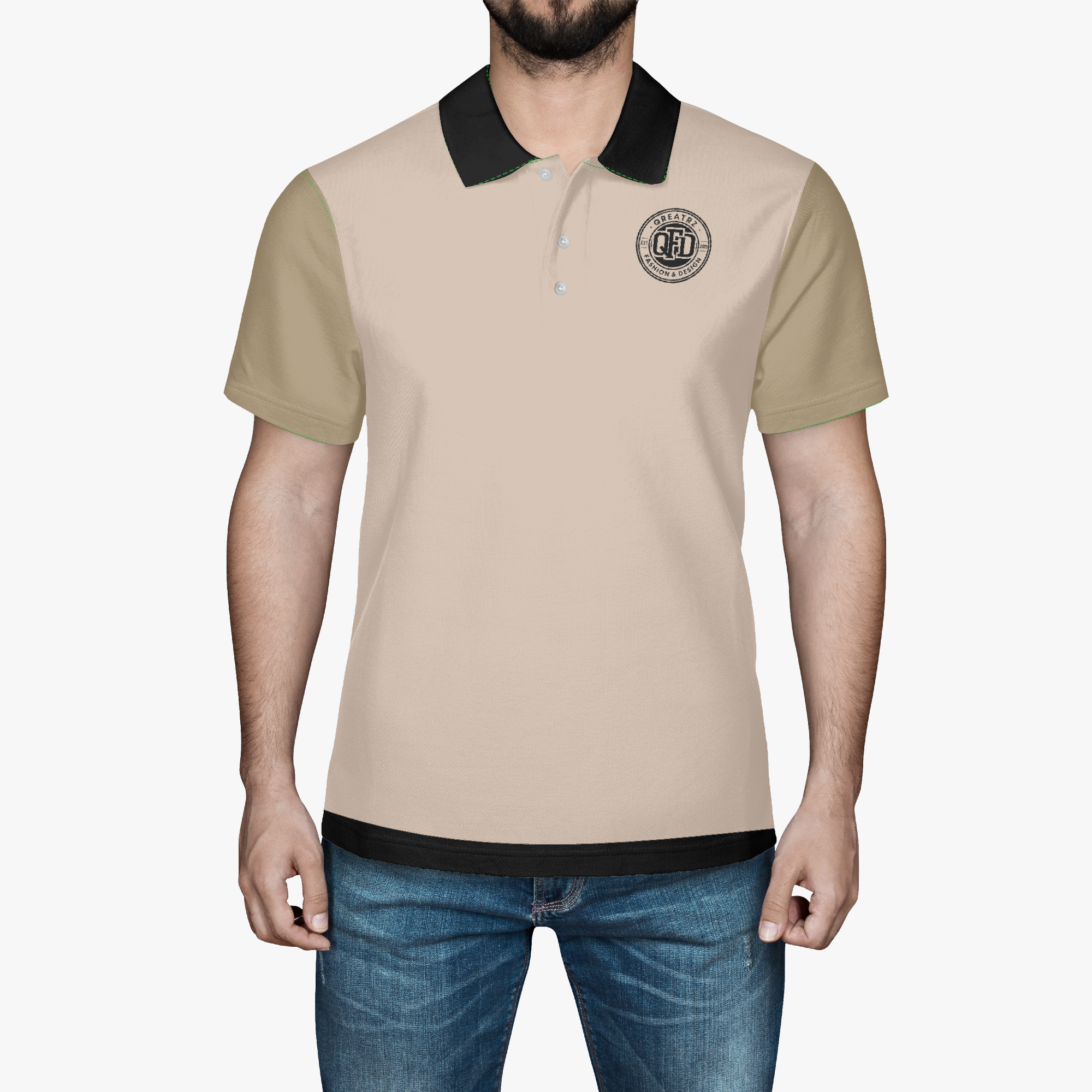 The beige polo shirt is versatile, stylish, and easy to wear. It gives your wardrobe a neutral staple with a polished edge. The color palette is soft and timeless. The black collar adds contrast. The QREATRZ logo completes the look.