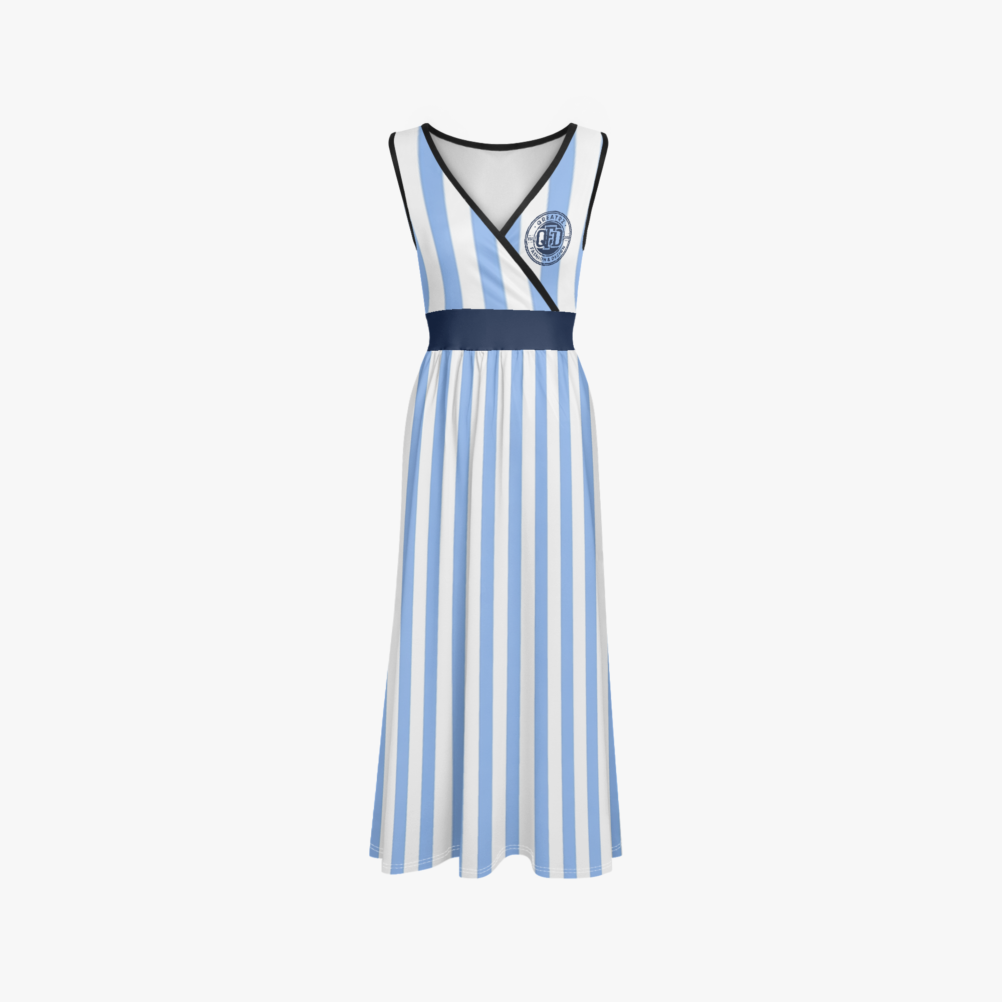 The QREATRZ™ Relaxed Breeze V-Neck Sleeveless Dress (Plus Size) is designed to bring comfort, elegance, and effortless style together. Featuring a flattering V-neckline, flowing maxi silhouette, and soft vertical stripe pattern, this dress enhances your natural shape while keeping your look light and refined.
