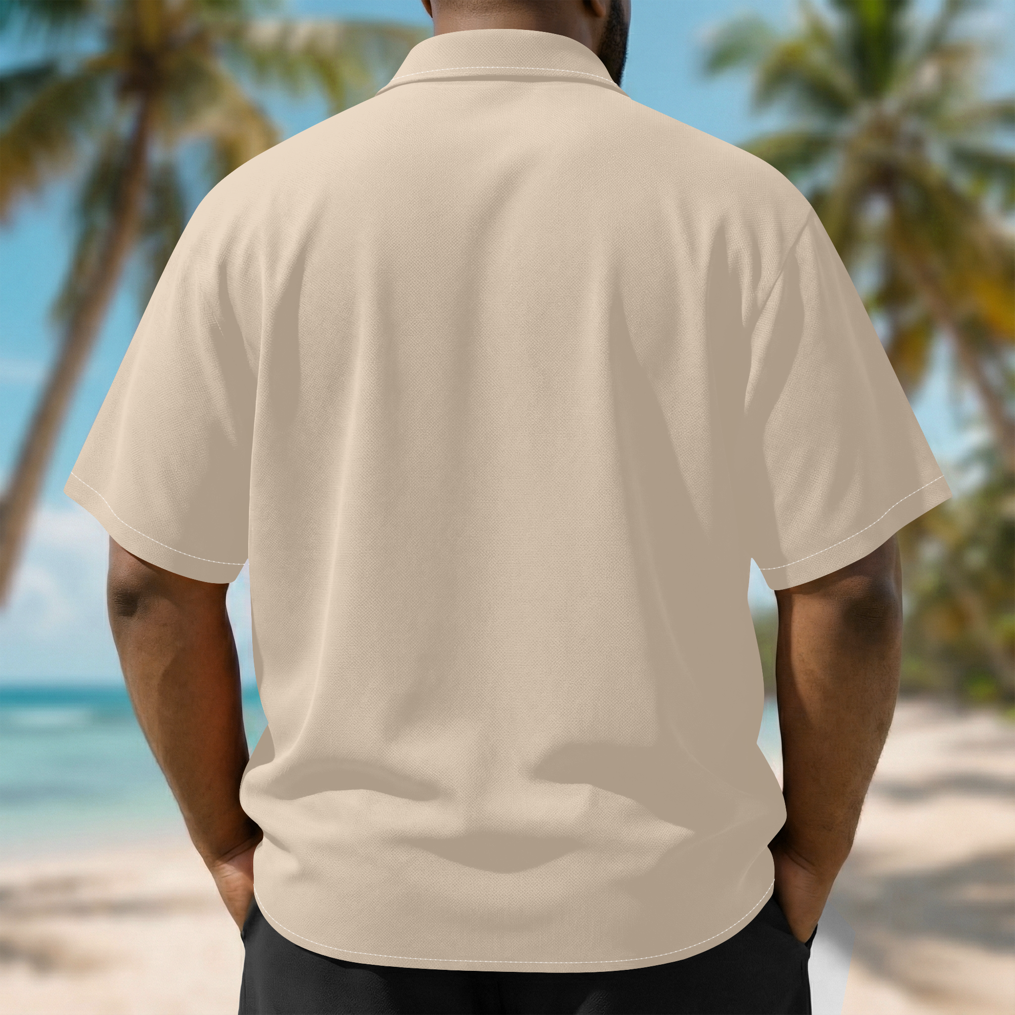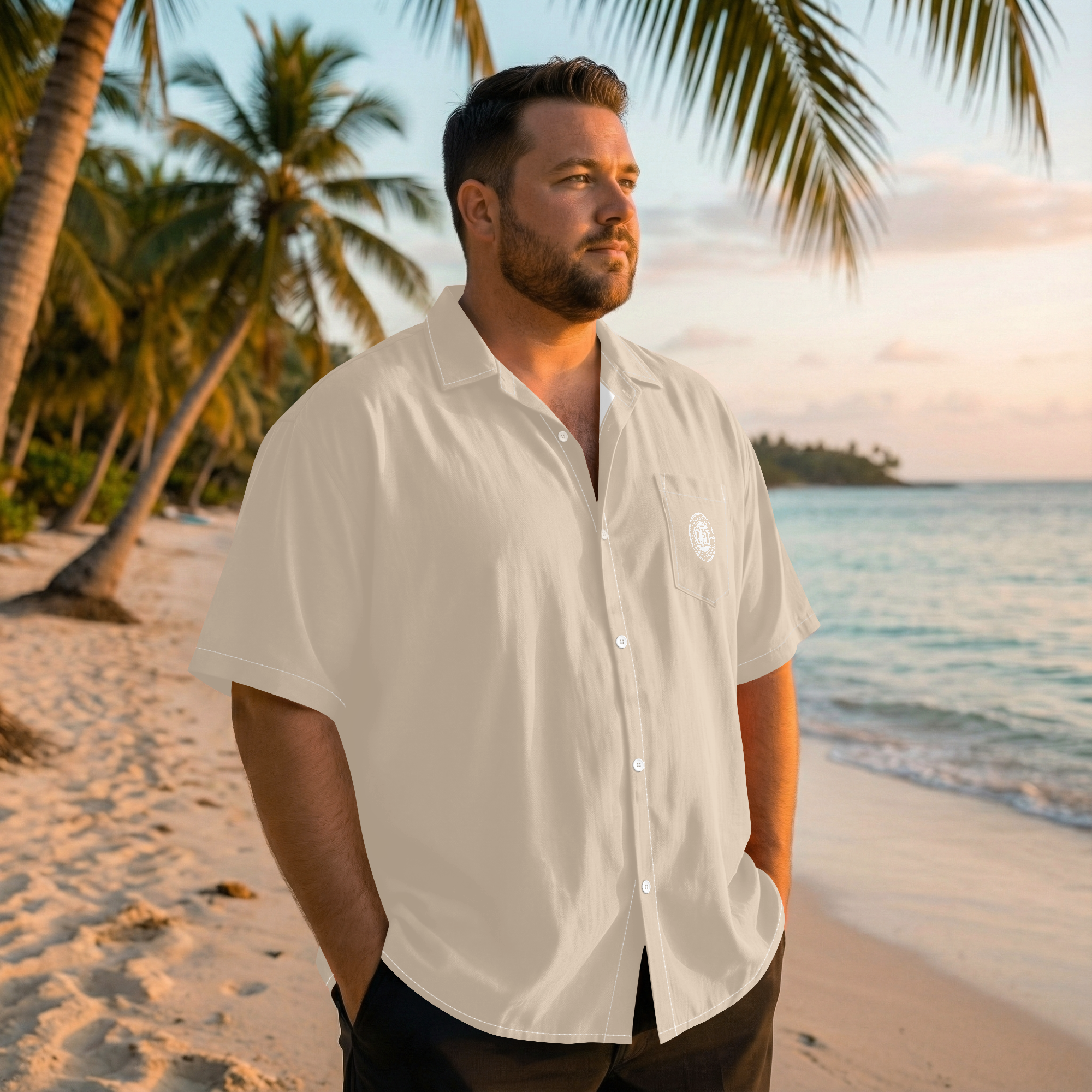 Its neutral color makes it perfect for beach days, summer outings, cruises, resort wear, weekend plans, and laid-back casual outfits. The classic short-sleeve button-up silhouette gives it a polished yet comfortable look that can be styled open over a tee, buttoned with shorts, or paired with jeans, linen pants, or sandals.